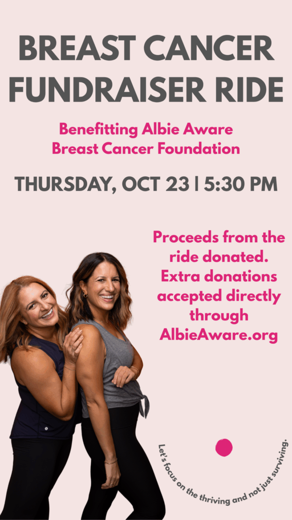 Join us in raising funds and awareness for Albie Aware Breast Cancer Foundation. Class is on Thursday, October 23 at 5:30pm!